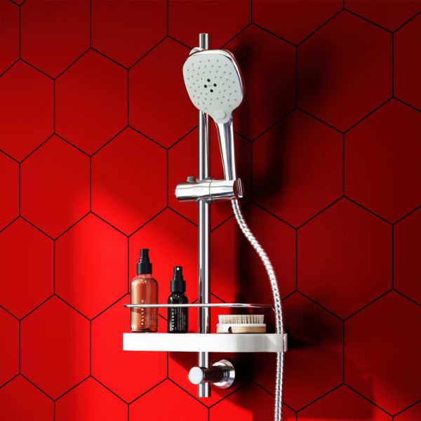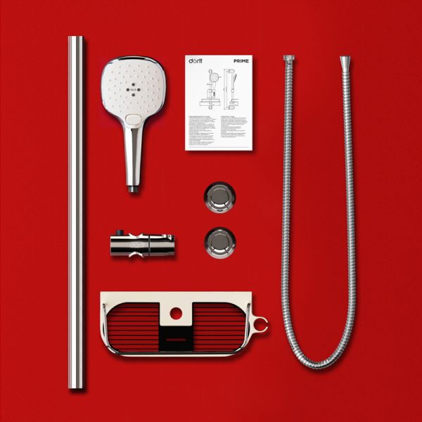 Современному душевому комплекту из коллекции Prime есть чем порадовать своих обладателей: ручной душ с 5-ю функциями, хромированный шланг, регулировка по высоте, эргономичная полка и стильное цветовое решение. А приятным бонусом для практичных хозяев станет долговечность и более чем привлекательная цена.