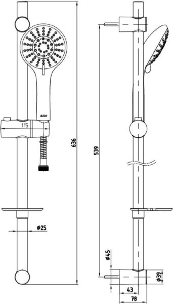 Душевой комплект:душевая штанга 600 мм;