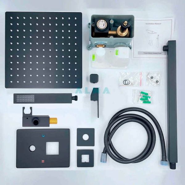 В правильно выполненном дизайне ванной комнаты нет ни одной лишней детали. Душевая система- это не только высококачественные современные технологии, это стильный дизайн и возможность добавить интересный акцент. Например, выбрав элегантный Душевой комплект со смесителем, на 2 режима, черный. Душ для тех, кто ценит каждый момент своей жизни. Комплектация: ? Верхняя лейка нержавейка размер 25*25 см. ? Длина верхнего кронштейна 40 см. ? Шланг 150 см. ? Лейка ручная: нержавеющая сталь. .? Встраиваемый смеситель латунь ? Глубина его погружения в стену 8 см