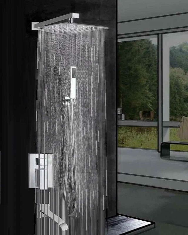 В правильно выполненном дизайне ванной комнаты нет ни одной лишней детали. Душевая система- это не только высококачественные современные технологии, это стильный дизайн и возможность добавить интересный акцент. Например, выбрав элегантный Душевой комплект со смесителем, 3 режима, Душ для тех, кто ценит каждый момент своей жизни. Комплектация: ? Плоский, широкий (каскадный) излив латунь 20 см. ? Верхняя лейка нержавеющая сталь размер 25*25 см. ? Длинна верхнего кронштейна 40 см. ? Шланг 150 см. ? Лейка ручная нержавеющая сталь ? Встраиваемый смеситель, материал латунь ? Глубина его погружения в стену 8 см.