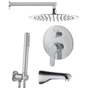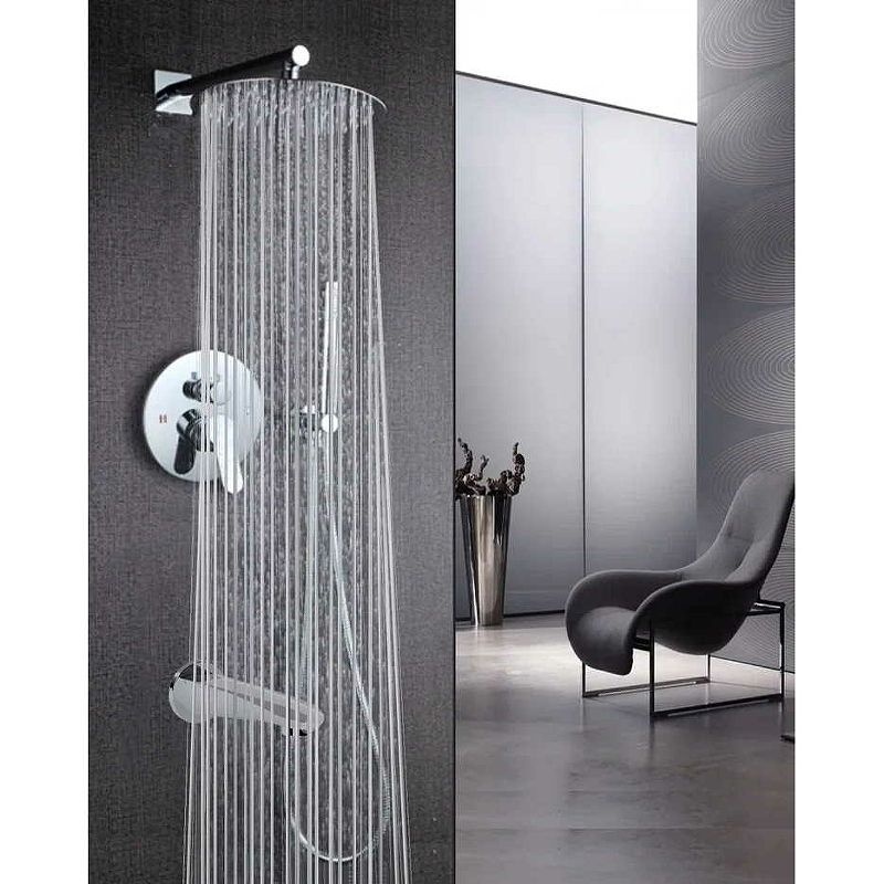 В правильно выполненном дизайне ванной комнаты нет ни одной лишней детали. Душевая система- это не только высококачественные современные технологии, это стильный дизайн и возможность добавить интересный акцент. Например, выбрав элегантный Душевой комплект со смесителем, на 3 режима, Душ для тех, кто ценит каждый момент своей жизни. Комплектация: ? Излив латунь 14 см. ? Верхняя лейка нержавеющая сталь размер 25 см. ? Длинна верхнего кронштейна 40 см. ? Шланг 150 см. ? Лейка ручная нержавеющая сталь ? Встраиваемый смеситель, материал латунь ? Глубина его погружения в стену 8 см.