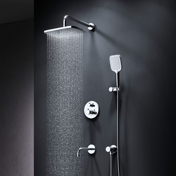 Набор встроенного оборудования X-Joy - идеальное решение для вашей ванной комнаты. Встроенный механизм освобождает ванную комнату от лишних деталей превращая пространство в идеальное место для себя. Набор включает в себя: верхний тропический душ 21x30 см, ручной душ, держатель ручного душа и смеситель.
