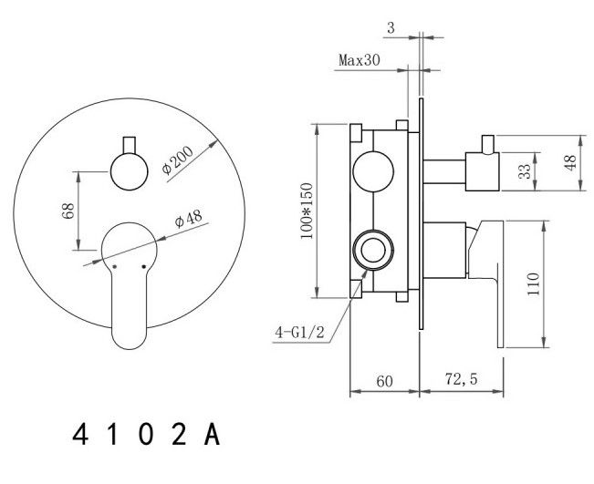 Размер верхнего душа, см:23