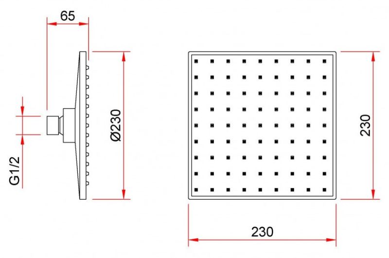 Размер верхнего душа, см:23