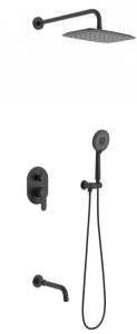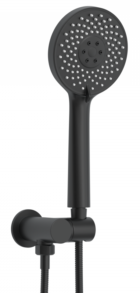 Душевой комплект BERGES VENTAS 3O - встраиваемый душевой комплект обладает трёхрежимной системой и состоит из верхней лейки - «тропического ливня», ручного душа, излива и смесителя.Лейка верхнего душа имеет инновационную систему самоочистки в виде гибких силиконовых вставок на форсунках душа, которые защищают изделие от известковых отложений. Верхний душ изготовлен из нержавеющей стали. Ручной душ – из ABS пластика. Оба душа имеют черное матовое покрытие, которое выглядит безупречно на протяжении всего периода эксплуатации.Шланг выполнен из нержавеющей стали (внутри epdm), смеситель с латунным корпусом имеет керамический картридж с пропускной способностью 28 л/мин, все держатели и кронштейны сделаны из латуни и нержавеющей стали.Скрытый монтаж комплекта позволяет создавать красивое и эргономичное внутреннее пространство всего помещения.