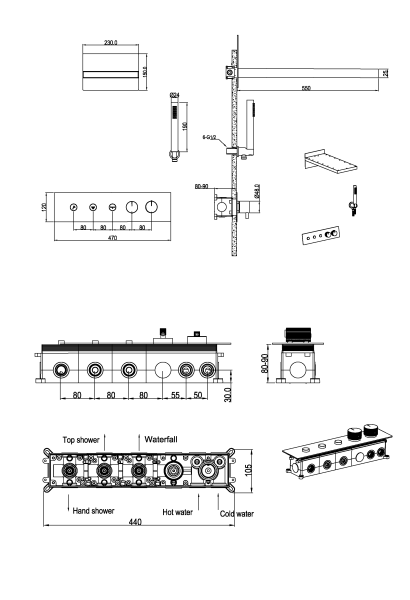 Душевой комплект Boheme Fusion 131-G с термостатом золото