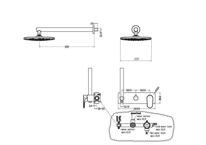 - Верхний душ: 30 см