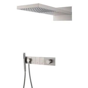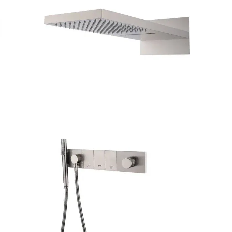 Ультра плоский дизайн, инновационное управление режимами позволит создать идеальный комфорт. Верхний душ размером 550мм*230мм с функцией тропического душа и водопада. Форсунки soft-silicone с функцией антикальк и комфортной очисткой. Магнитный держатель лейки Каскадный излив как дополнительная опция. Картридж Sedal, переключатели Neoperl.