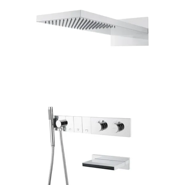 Ультра плоский дизайн, инновационное управление режимами позволит создать идеальный комфорт. Верхний душ размером 550мм*230мм с функцией тропического душа. Форсунки soft-silicone с функцией антикальк и комфортной очисткой. Магнитный держатель лейки Каскадный излив как дополнительная опция. Картридж Sedal, переключатели Neoperl, термостат Vernet (Франция).
