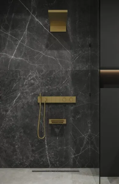 Ультра плоский дизайн, инновационное управление режимами позволит создать идеальный комфорт. Верхний душ размером 550мм*230мм с функцией тропического душа. Форсунки soft-silicone с функцией антикальк и комфортной очисткой. Магнитный держатель лейки Каскадный излив как дополнительная опция. Картридж Sedal, переключатели Neoperl, термостат Vernet (Франция).