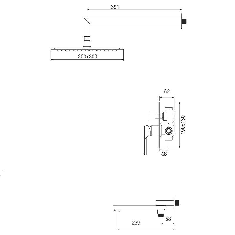 - размер тропического душа: 300х300 мм