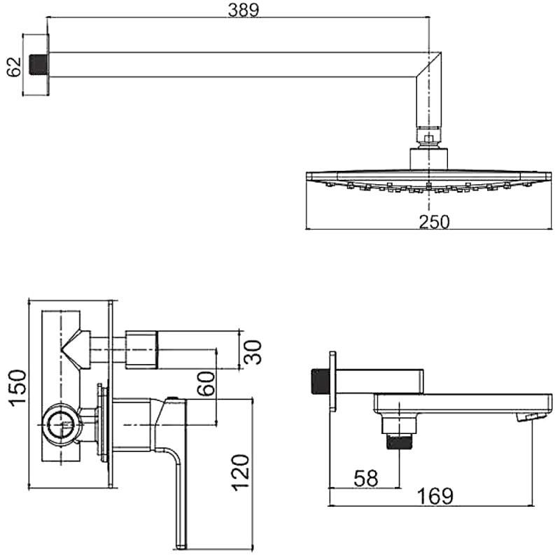 - размер тропического душа: 250х250 мм