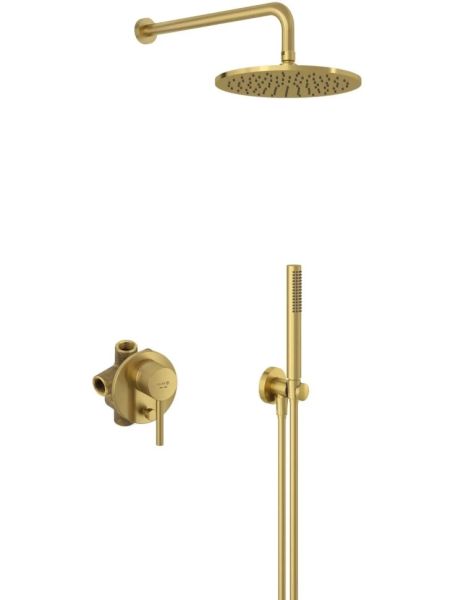 Душевой комплект Kludi Bozz 38736N076 со смесителем брашированное золото купить