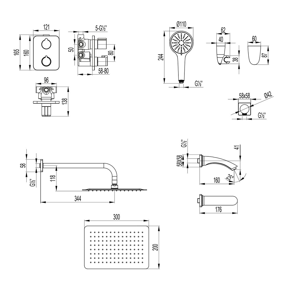 - Верхняя поворотная душевая лейка «Тропический дождь» 200х300 мм