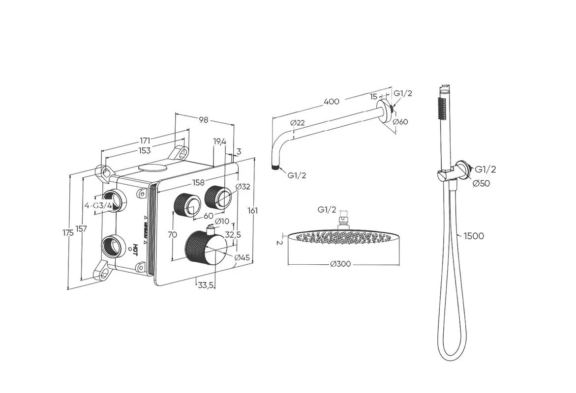 Душевой комплект Milleau Tissage TERMO 2SBIT/801-GB черный
