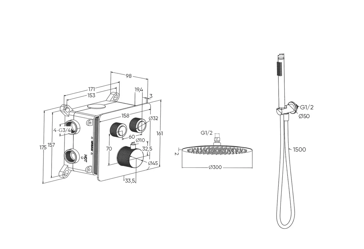 Душевой комплект Milleau Tissage TERMO 2SBIT/802-GB черный