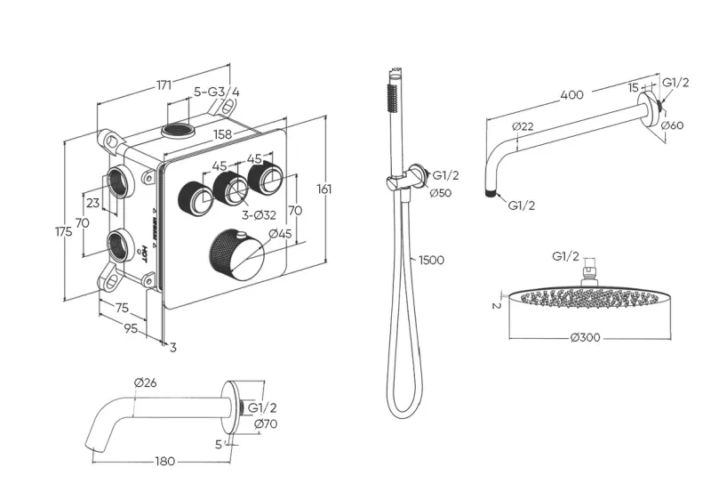 Душевой комплект Milleau Tissage TERMO 3SBIT/801Q-GB черный