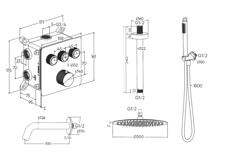 Душевой комплект Milleau Tissage TERMO 3SBIT/802Q-GB черный