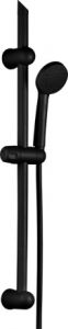 Душевой комплект OneLife OL11b - простое современное решение для ванной комнаты. Душевая лейка d80 мм (1 режим) с силиконовыми наконечниками для легкой и быстрой очистки от известкового налета, штанга 710 мм с возможностью установки в старые отверстия, душевой шланг 1500 мм с защитой от перекручивания, держатель лейки с регулировкой по высоте. Гарнитур выполнен из высокотехнологичного полимера по запатентованной технологии (не подвержен коррозии и окислению, стойкий к отрицательным температурам), что увеличивает срок его службы. Цвет матовый черный.