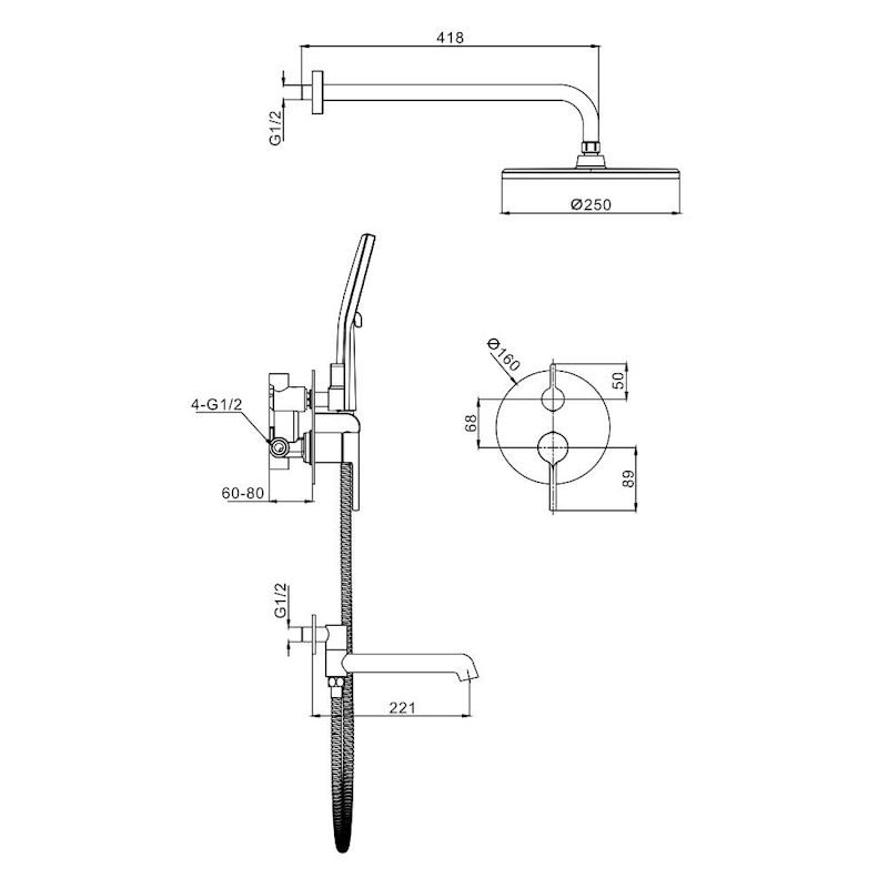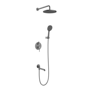Душевая система встраиваемая Raglo R20.27.09, графит. Материал: латунь. Управление: однорычажное. Механизм: керамический картридж. Излив: поворотный. Аэратор. Диаметр верхнего душа: 250 мм. Форма верхнего душа и ручного душа: круглая. Количество режимов струи ручного душа: 3. Стандарт подводки: G 1/2. Монтаж: встраиваемый. Излив - функция переключения.