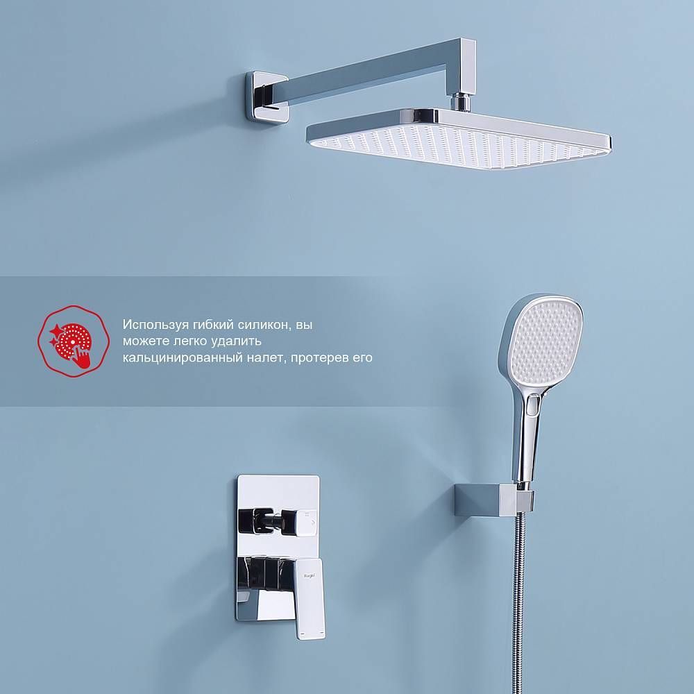 Душевая система встраиваемая Raglo R30.27, хром.Материал: латунь.Управление: однорычажное.Механизм: керамический картридж.Излив: поворотный. Аэратор.Размер верхнего душа (ШхД): 320х210 мм.Форма верхнего душа: прямоугольная.Размер ручного душа (ШхВ): 120х247 мм.Количество режимов струи ручного душа: 3.Переключение режимов ручного душа: кнопочное.Стандарт подводки: G 1/2.Монтаж: встраиваемый.Излив - функция переключения.