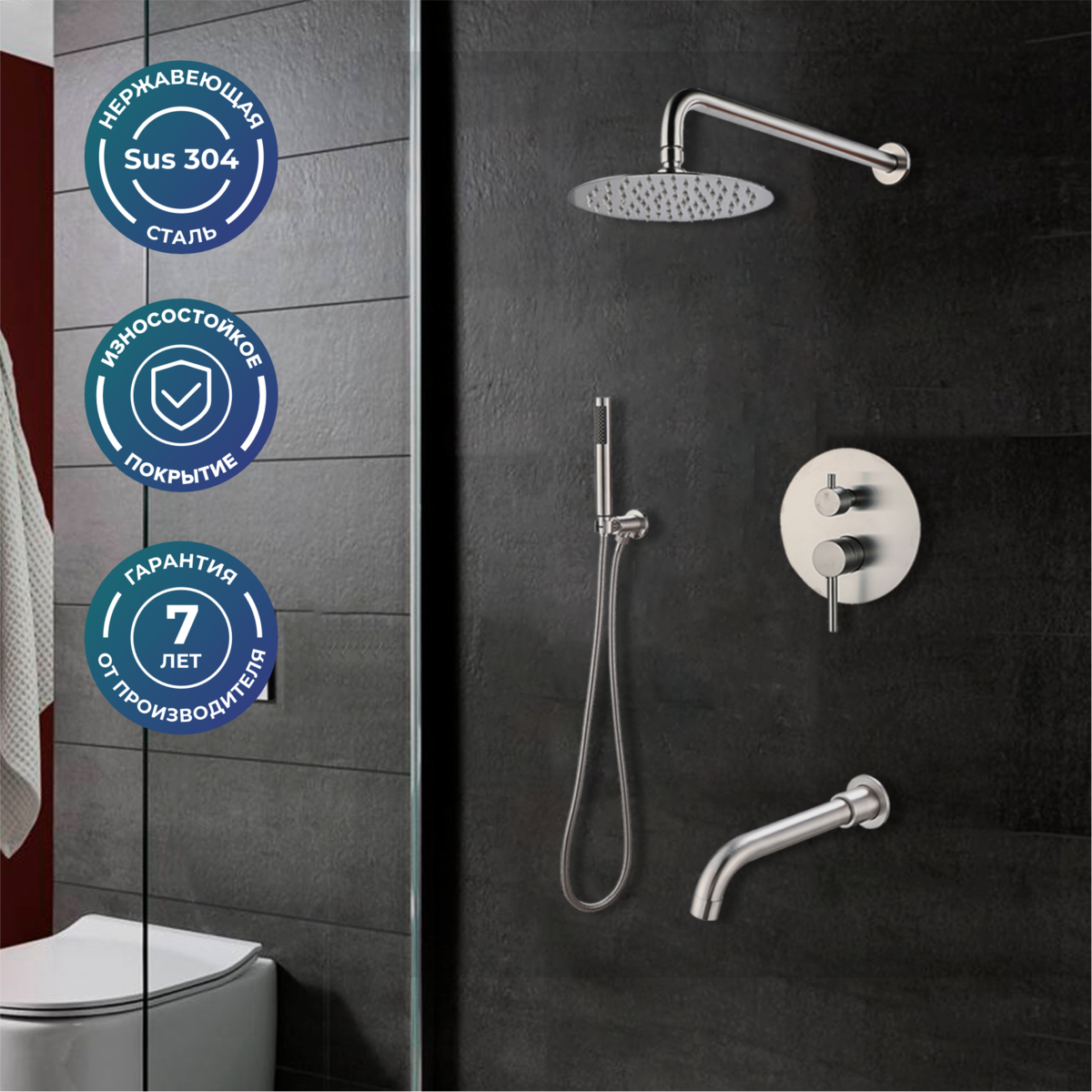 Душевой комплект РМС SUS129-1S нержавеющая сталь купить