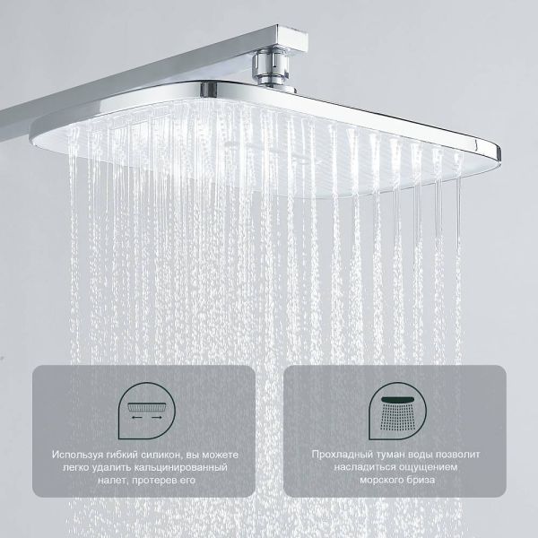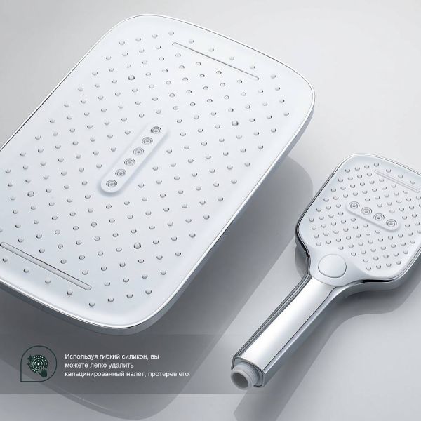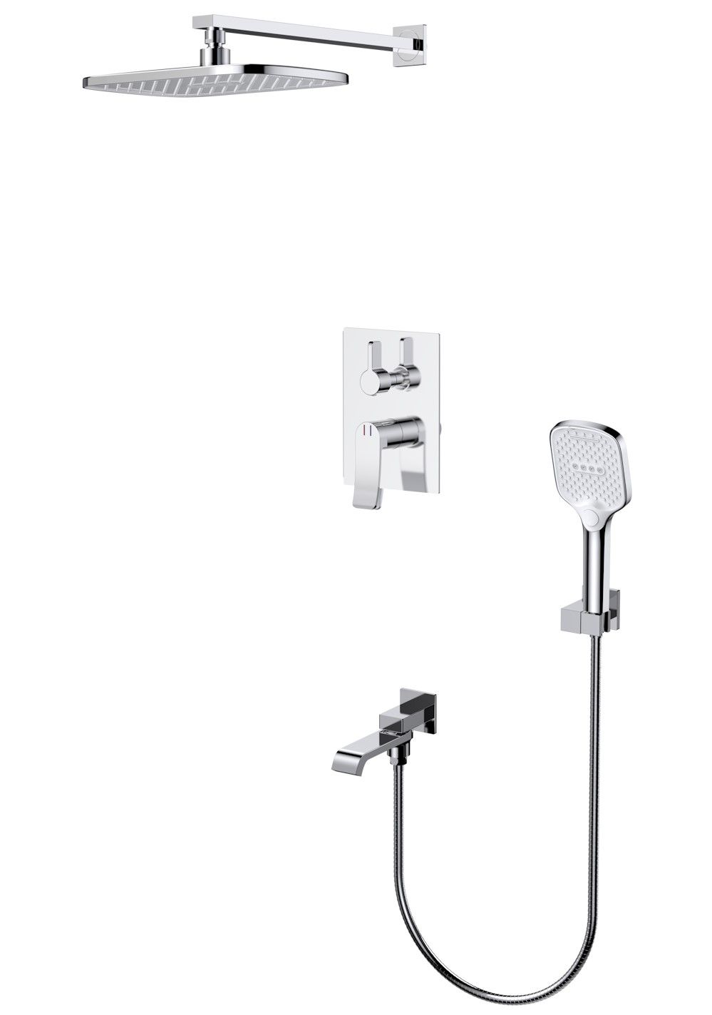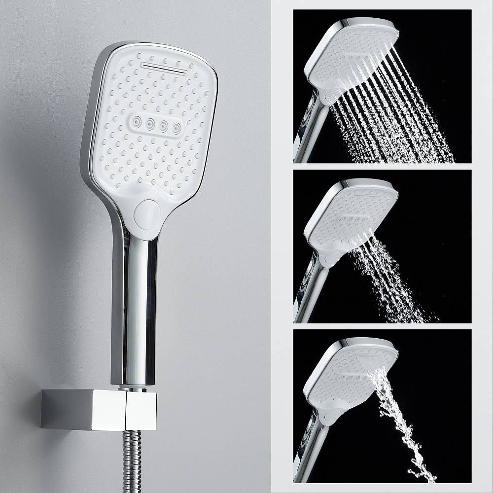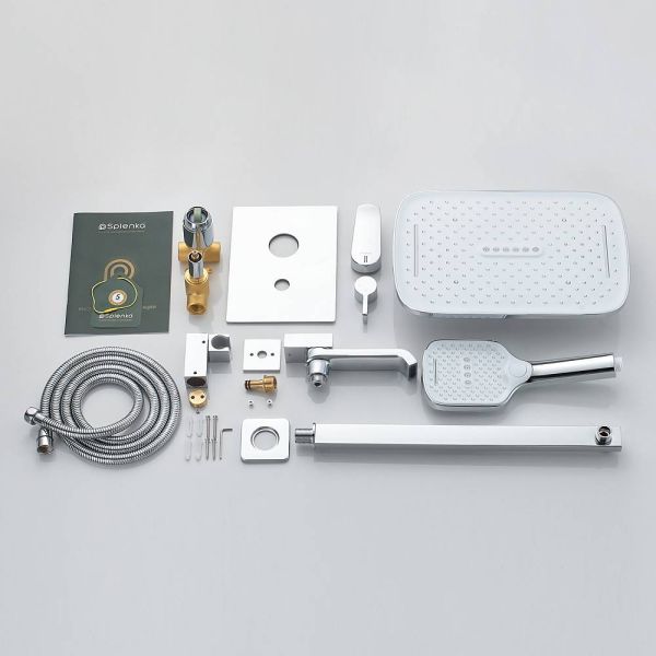 Душевая система встраиваемая Splenka S31.27, хром. Материал: латунь. Управление: однорычажное. Механизм: керамический картридж. Излив: поворотный. Тип излива: каскадный. Аэратор. Форма верхнего душа: прямоугольная. Размер верхнего душа (ШхД): 320х210 мм. Размер ручного душа (ШхВ): 106х254 мм. Количество режимов струи ручного душа: 3. Переключение режимов ручного душа: кнопочное. Стандарт подводки: G 1/2. Монтаж: встраиваемый. Излив - функция переключения.