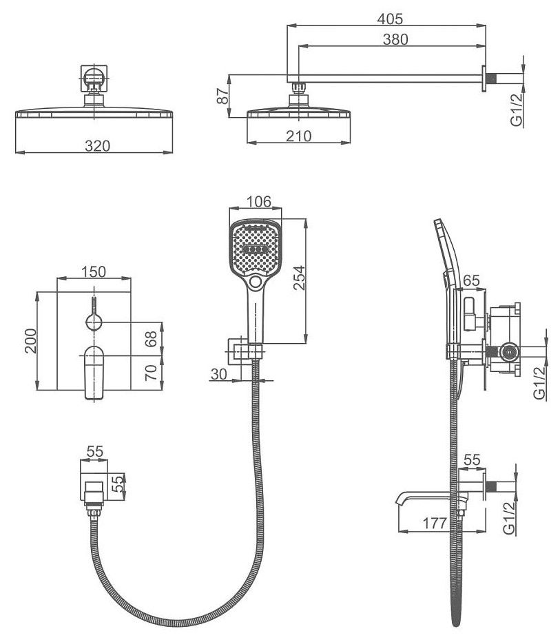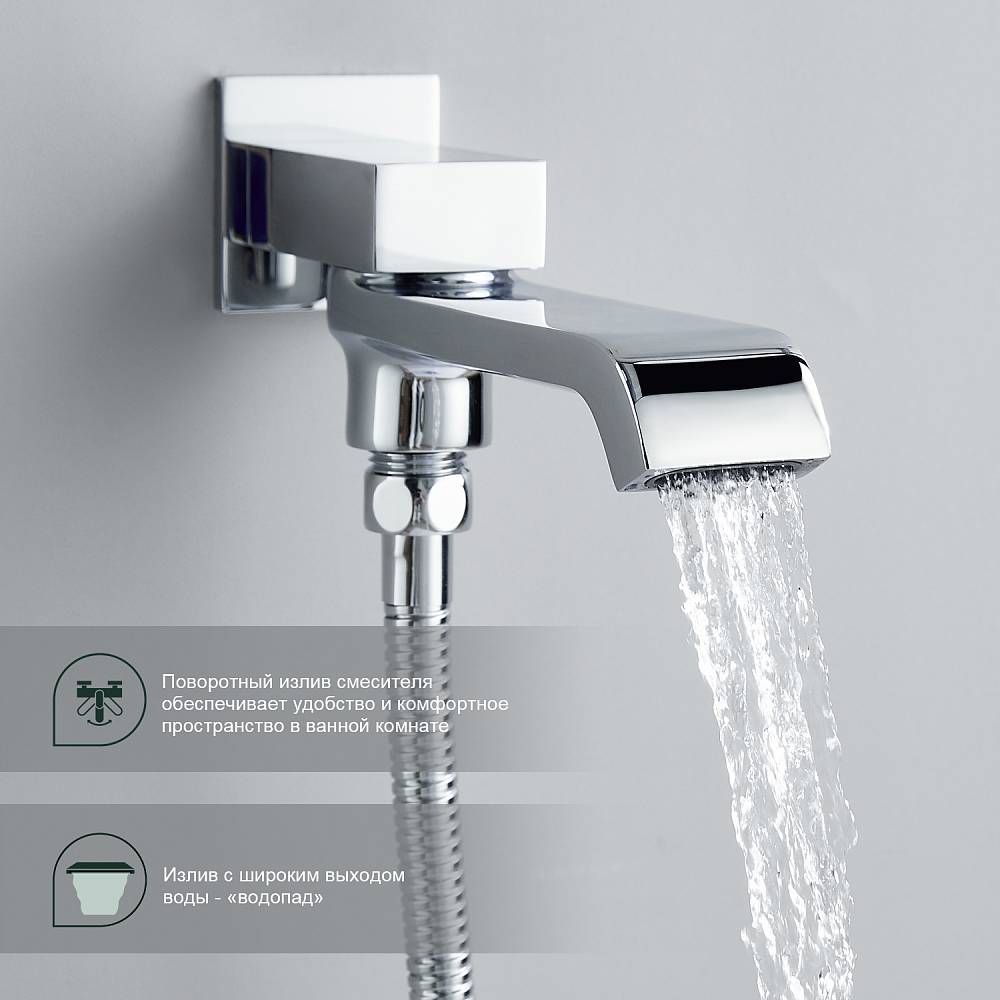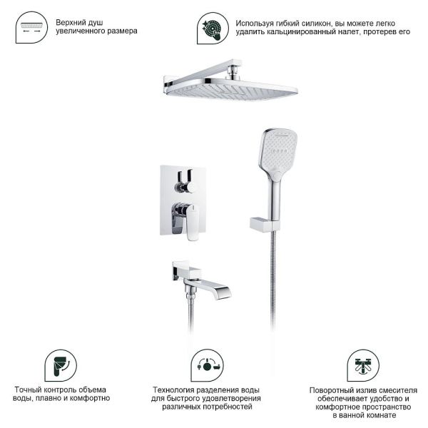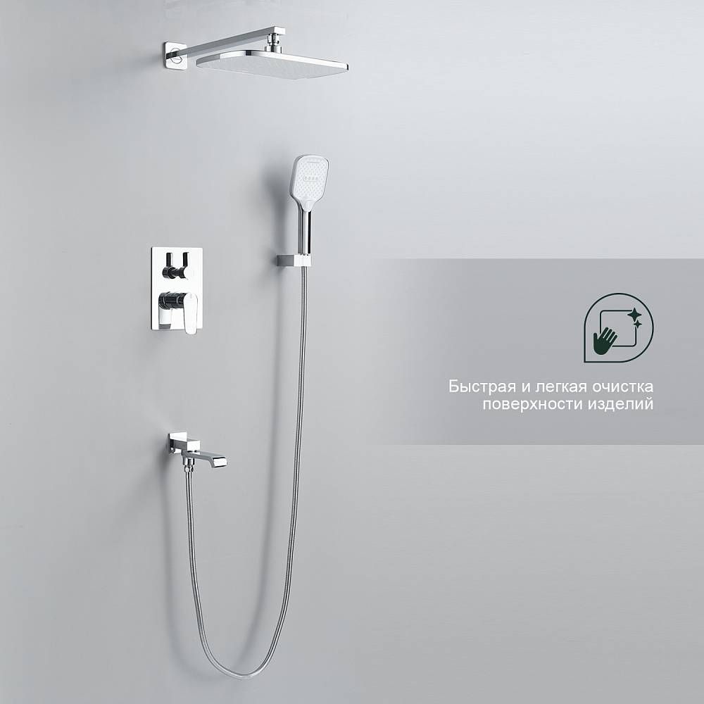 Душевая система встраиваемая Splenka S31.27, хром. Материал: латунь. Управление: однорычажное. Механизм: керамический картридж. Излив: поворотный. Тип излива: каскадный. Аэратор. Форма верхнего душа: прямоугольная. Размер верхнего душа (ШхД): 320х210 мм. Размер ручного душа (ШхВ): 106х254 мм. Количество режимов струи ручного душа: 3. Переключение режимов ручного душа: кнопочное. Стандарт подводки: G 1/2. Монтаж: встраиваемый. Излив - функция переключения.