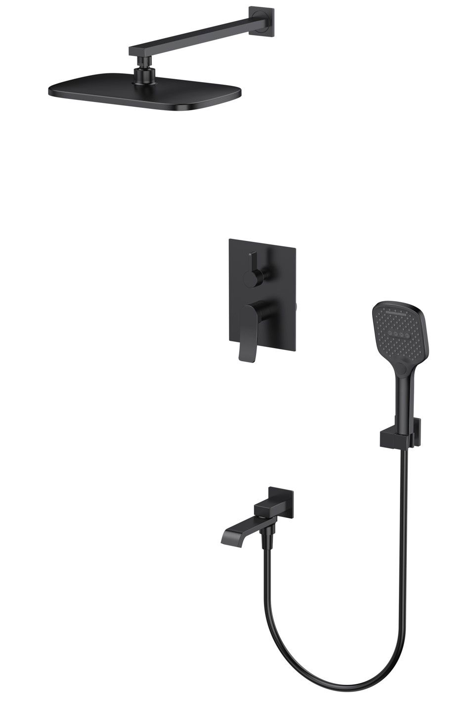 Душевая система встраиваемая Splenka S31.27.06, черный. Материал: латунь. Управление: однорычажное. Механизм: керамический картридж. Излив: поворотный. Тип излива: каскадный. Аэратор. Форма верхнего душа: прямоугольная. Размер верхнего душа (ШхД): 320х210 мм. Размер ручного душа (ШхВ): 106х254 мм. Количество режимов струи ручного душа: 3. Переключение режимов ручного душа: кнопочное. Стандарт подводки: G 1/2. Монтаж: встраиваемый. Излив - функция переключения.