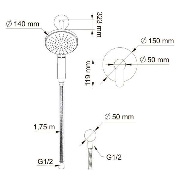 Размер ручного душа, см:14