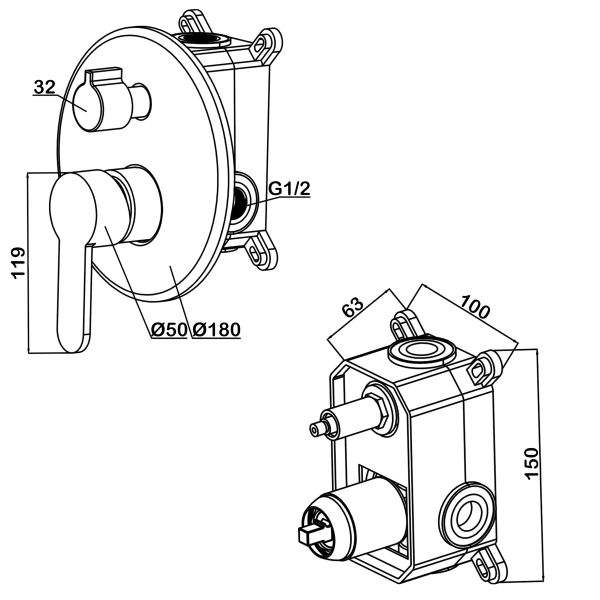 Swedbe Platta 5536 Душевой комплект со встроенным смесителем (с монтажным боксом) и верхним душем.