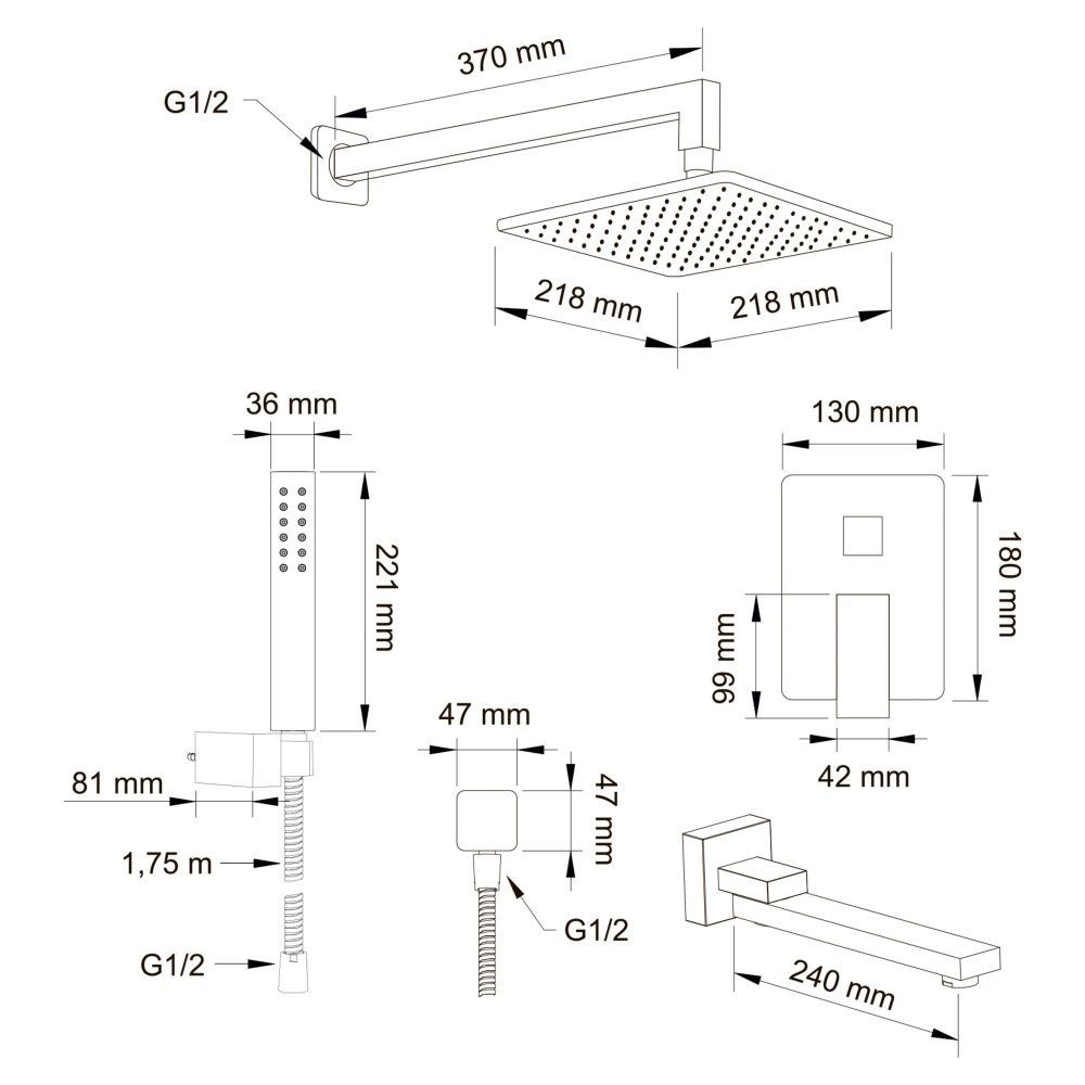 Swedbe Platta 5546 Душевой комплект со встроенным смесителем (с монтажным боксом), верхним душем и поворотным изливом.