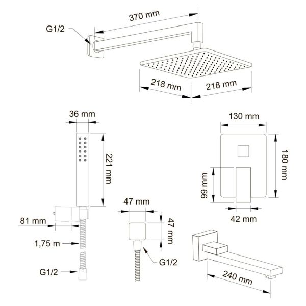- верхний душ (душевая головка) с регулировкой наклона, настенный монтаж;