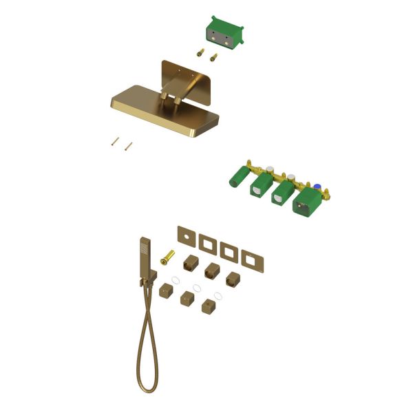 Цвет "матовое золото" никогда не выйдет из моды, во все времена драгоценный металл был признаком богатства.Душевая система с термостатом Timo Petruma 5249 относится к премиальному сегменту, предназначена для монтажа в полой или твердой стене. Термостатический картридж поддерживает стабильную температуру воды, обеспечивая максимально комфортные условия для принятия водных процедур. Настенный душ с двумя режимами позволяет принимать водные процедуры в зависимости от настроения. Регулируя напор воды можно получить массажное воздействие различной интенсивности. Используя режим "каскад"- получают седативное (успокаивающее) воздействие на затылочную часть головы или шейный отдел. Основные преимущества встроенной системы: элегантный внешний вид, все коммуникации и крепления спрятаны в стену, снаружи видны только декоративные элементы. Установить встроенную систему можно в любом месте. Использовать такой смеситель очень удобно, регулировка температуры воды осуществляется ручкой термостата (расположена справа). Переключение режимов "каскад", "тропический душ", "ручной душ" и увеличение напора осуществляется поворотом ручек диверторов расположенных слева от термостата. В положении ручек диверторов в положение 12:00 (смеситель выключен). Смеситель может работать в нескольких режимах одновременно"каскад"+"ручной душ", "тропический душ"+"ручной душ". Сложностей монтажа не возникает при установке элементов душевой системы опытным сантехником. Внимательно изучите инструкцию по монтажу и эксплуатации.