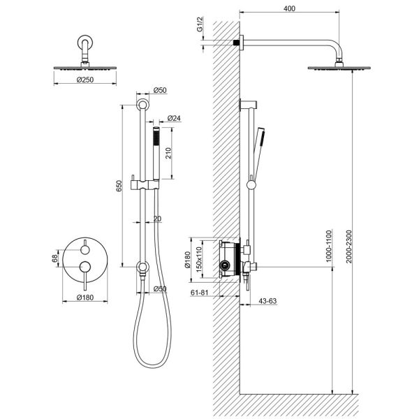 Черная сантехника становится все более популярной для ванных комнат из-за спообности расставлять акценты.Встраиваемая душевая система Saona 2309, предназначена для монтажа в полой или твердой стене. Основные преимущества встроенной системы: коммуникации, крепления и механизмы спрятаны в стену и видны только декоративные элементы. Установить встроенную систему можно в любом месте. Cтильная стойка из латуни позволяет установить ручную лейку-карандаш на необходимую высоту. Использовать такой смеситель очень удобно, регулировка температуры и напора воды осуществляется одним рычагом. Регулируя напор воды в режиме "тропический душ", можно получить массажное воздействие различной интенсивности. Переключение режимов подачи воды (тропический душ, ручная лейка) осуществляется поворотом керамического дивертора. Сложностей монтажа не возникает при установке элементов душевой системы опытным сантехником.Внимательно изучите инструкцию по монтажу и эксплуатации. Черная сантехника требует бережного ухода.