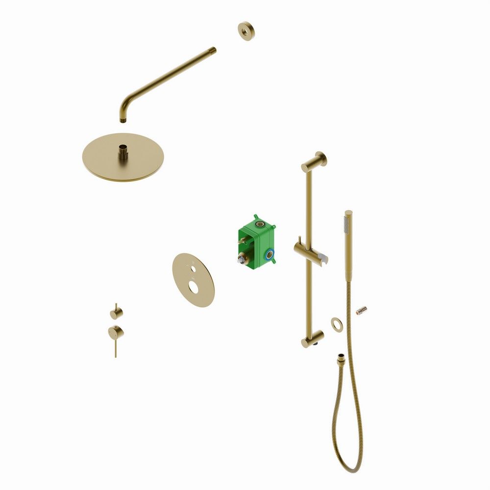 Цвет "матовое золото" никогда не выйдет из моды, во все времена драгоценный металл был признаком богатства.Встраиваемая душевая система Saona 2309, предназначена для монтажа в полой или твердой стене. Основные преимущества встроенной системы: коммуникации, крепления и механизмы спрятаны в стену и видны только декоративные элементы. Установить встроенную систему можно в любом месте. Cтильная стойка из латуни позволяет установить ручную лейку-карандаш на необходимую высоту. Использовать такой смеситель очень удобно, регулировка температуры и напора воды осуществляется одним рычагом. Регулируя напор воды в режиме "тропический душ", можно получить массажное воздействие различной интенсивности. Переключение режимов подачи воды (тропический душ, ручная лейка) осуществляется поворотом керамического дивертора. Сложностей монтажа не возникает при установке элементов душевой системы опытным сантехником. Внимательно изучите инструкцию по монтажу и эксплуатации.