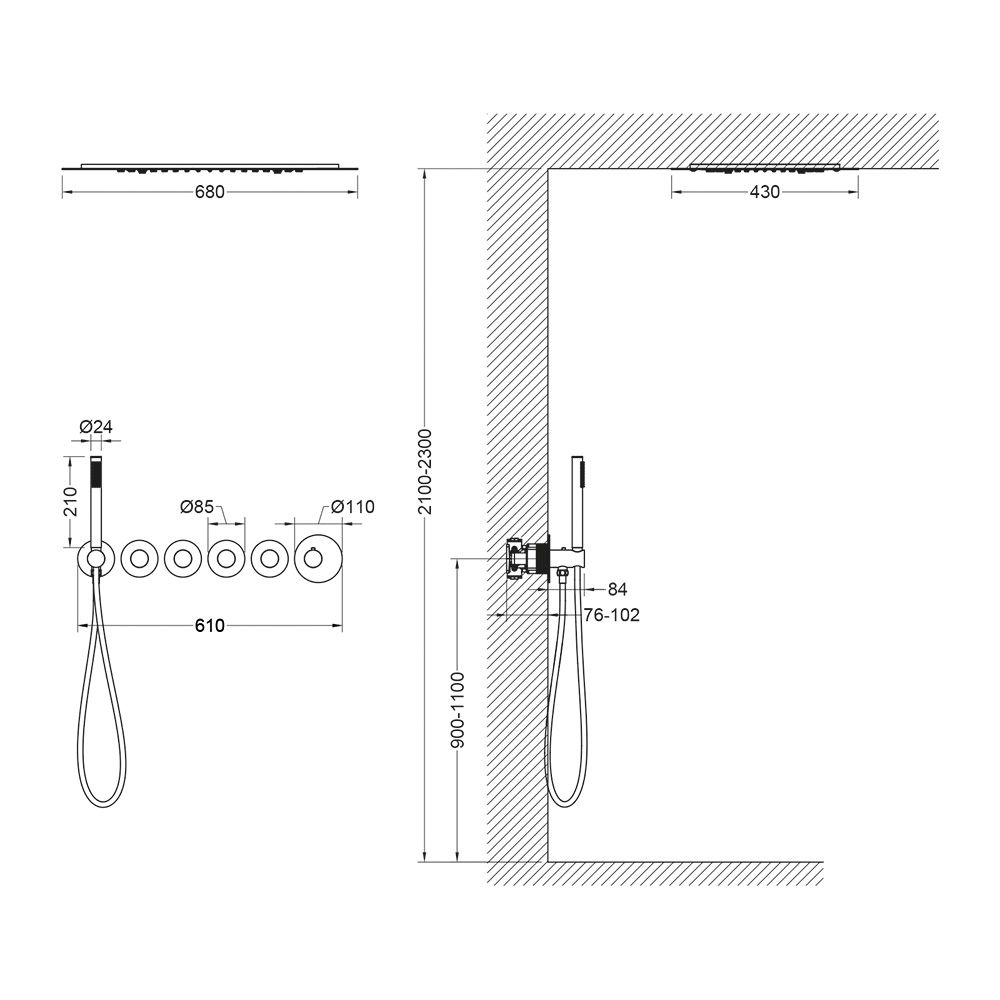Размер верхнего душа, см:68