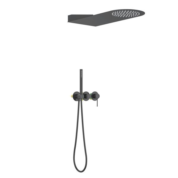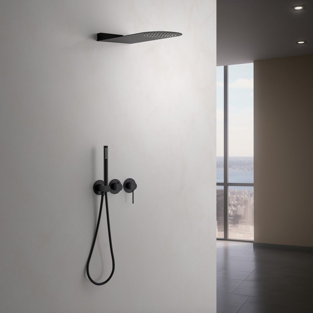 Черная сантехника становится все более популярной для ванных комнат из-за спообности расставлять акценты.Встраиваемая душевая система Saona 2340, предназначена для монтажа в полой или твердой стене. Основные преимущества встроенной системы: коммуникации, крепления и механизмы спрятаны в стену и видны только декоративные элементы. Установить встроенную систему можно в любом месте. Использовать такой смеситель очень удобно, регулировка температуры и напора воды осуществляется одним рычагом. Настенный душ с двумя режимами позволяет принимать водные процедуры в зависимости от настроения. Регулируя напор воды можно получить массажное воздействие различной интенсивности. Используя режим "каскад"- получают седативное (успокаивающее) воздействие на затылочную часть головы или шейный отдел. Переключение режимов подачи воды ("тропический душ", "каскад" или ручная лейка) осуществляется поворотом ручки дивертора. Сложностей монтажа не возникает при установке элементов душевой системы опытным сантехником. Внимательно изучите инструкцию по монтажу.