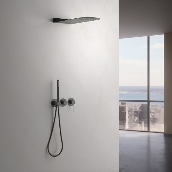 "Черное золото"- неизменно эффектный и привлекающий внимание цвет. Приглушенный мягкий оттенок черного, подчеркнет форму раковины или цвет мебели.Встраиваемая душевая система Saona 2340, предназначена для монтажа в полой или твердой стене. Основные преимущества встроенной системы: коммуникации, крепления и механизмы спрятаны в стену и видны только декоративные элементы. Установить встроенную систему можно в любом месте. Использовать такой смеситель очень удобно, регулировка температуры и напора воды осуществляется одним рычагом. Настенный душ с двумя режимами позволяет принимать водные процедуры в зависимости от настроения. Регулируя напор воды можно получить массажное воздействие различной интенсивности. Используя режим "каскад"- получают седативное (успокаивающее) воздействие на затылочную часть головы или шейный отдел. Переключение режимов подачи воды ("тропический душ", "каскад" или ручная лейка) осуществляется поворотом ручки дивертора. Сложностей монтажа не возникает при установке элементов душевой системы опытным сантехником. Внимательно изучите инструкцию по монтажу. Цвет "черное золото" не капризен в уходе, на нем менее заметны загрязнения и мелкие царапины.