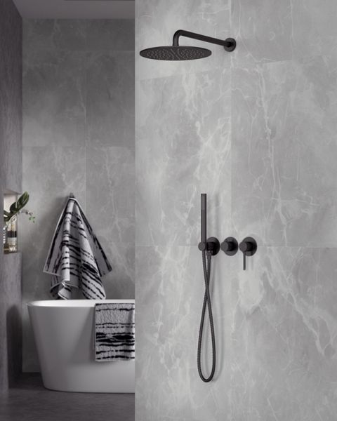 Черная сантехника становится все более популярной для ванных комнат из-за способности расставлять акценты.Встраиваемая душевая система Saona 2349, предназначена для монтажа в полой или твердой стене. Основные преимущества встроенной системы: коммуникации, крепления и механизмы спрятаны в стену и видны только декоративные элементы. Установить встроенную систему можно в любом месте. Использовать такой смеситель очень удобно, регулировка температуры и напора воды осуществляется одним рычагом. Регулируя напор воды в режиме "тропический душ", можно получить массажное воздействие различной интенсивности. Переключение режимов подачи воды (тропический душ, ручная лейка) осуществляется поворотом керамического дивертора. Сложностей монтажа не возникает при установке элементов душевой системы опытным сантехником. Внимательно изучите инструкцию по монтажу. Черная сантехника требует бережного ухода.