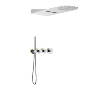 Душевая система с термостатом Timo Saona 2350 относится к премиальному сегменту, предназначена для монтажа в полой или твердой стене. Термостатический картридж поддерживает стабильную температуру воды, обеспечивая максимально комфортные условия для принятия водных процедур. Настенный душ с двумя режимами позволяет принимать водные процедуры в зависимости от настроения. Регулируя напор воды можно получить массажное воздействие различной интенсивности. Используя режим "каскад"- получают седативное (успокаивающее) воздействие на затылочную часть головы или шейный отдел. Основные преимущества встроенной системы: элегантный внешний вид, все коммуникации и крепления спрятаны в стену, снаружи видны только декоративные элементы. Установить встроенную систему можно в любом месте. Использовать такой смеситель очень удобно, регулировка температуры воды осуществляется ручкой термостата (расположена справа). Переключение режимов "каскад", "тропический душ", "ручной душ" и увеличение напора осуществляется поворотом ручек диверторов расположенных слева от термостата. В положении ручек диверторов в положение 12:00 (смеситель выключен). Смеситель может работать в нескольких режимах одновременно"каскад"+"ручной душ", "тропический душ"+"ручной душ". Сложностей монтажа не возникает при установке элементов душевой системы опытным сантехником. Внимательно изучите инструкцию по монтажу и эксплуатации.