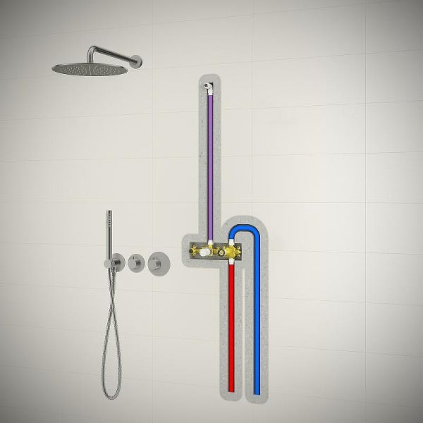 - Душевая система с термостатом, скрытого монтажа с круглой лейкой.