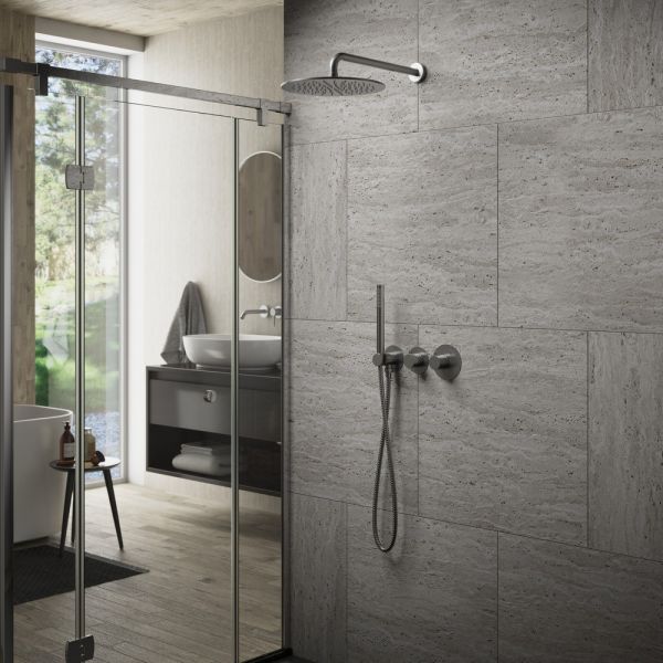 "Черное золото"- неизменно эффектный и привлекающий внимание цвет. Приглушенный мягкий оттенок черного, подчеркнет форму раковины или цвет мебели.Встраиваемая душевая система с термостатом Timo Saona 2359 относится к премиальному сегменту, предназначена для монтажа в полой или твердой стене. Термостатический картридж поддерживает стабильную температуру воды, обеспечивая максимально комфортные условия для принятия водных процедур. Верхний душ создает имитацию проливного дождя, вода обливает человека целиком. Регулируя напор воды можно получить массажное воздействие, что очень полезно для здоровья. Основные преимущества встроенной системы: элегантный внешний вид, все коммуникации и крепления спрятаны в стену и потолок, снаружи видны только декоративные элементы. Установить встроенную систему можно в любом месте. Сложностей монтажа не возникает при установке элементов душевой системы опытным сантехником. Внимательно изучите инструкцию по монтажу и эксплуатации. Цвет "черное золото" не капризен в уходе, на нем менее заметны загрязнения и мелкие царапины.