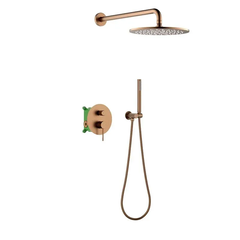 Душевая система встроенная с настенным душем с круглой лейкой в стиле модерн.