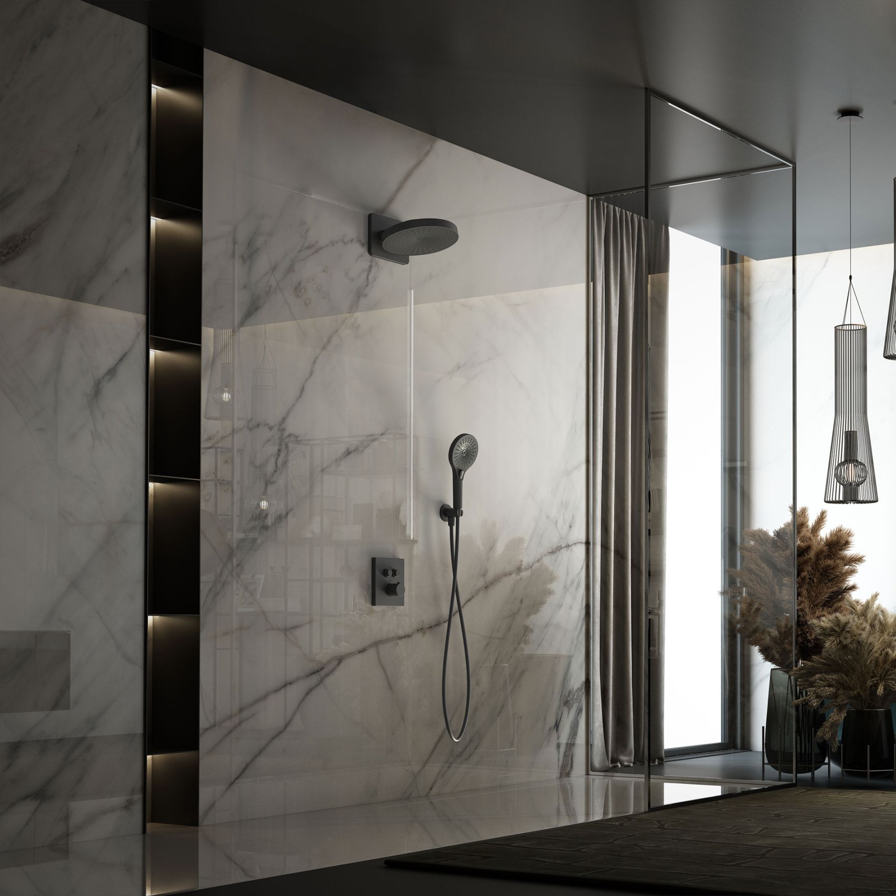 Душевой комплект Vincea Inspire VSFW-3I21T1MB встраиваемый, термостатический, двухрежимный, черный купить