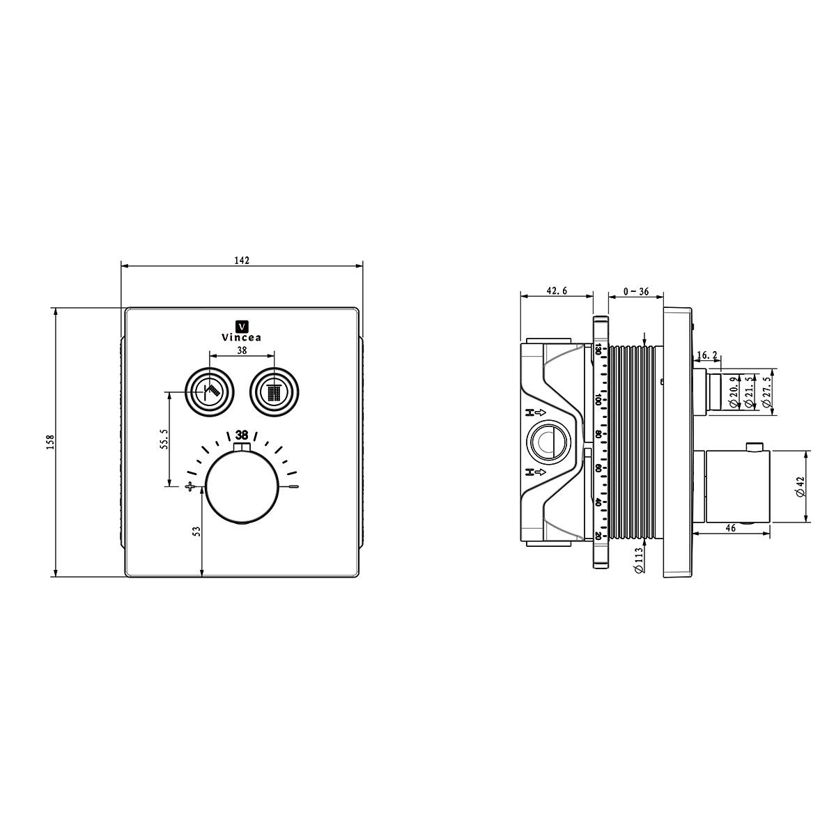 Душевой комплект Vincea Inspire VSFW-3I21T1RMB встраиваемый, термостатический, двухрежимный, черный