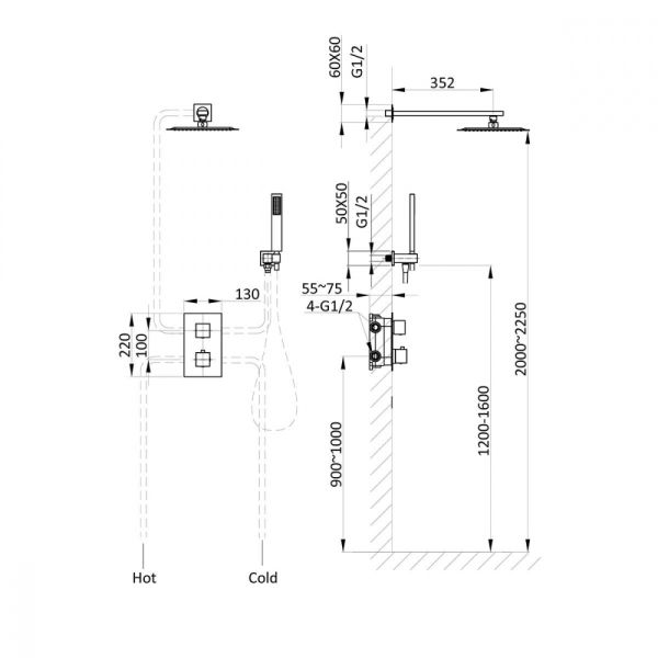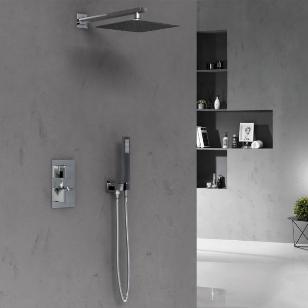 Состав комплекта: верхний душ, ручной душ, смеситель со встраиваемой частью