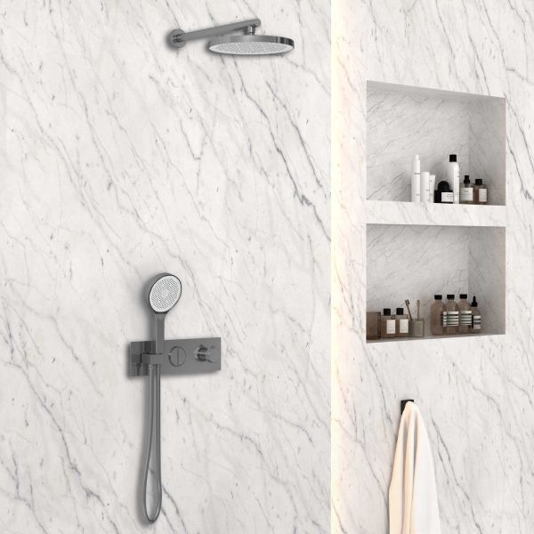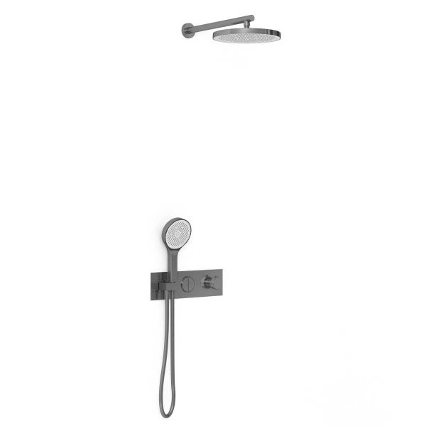 Душевой комплект Vincea VSFW-422T2GM встраиваемый, термостатический, двухрежимный, вороненая сталь