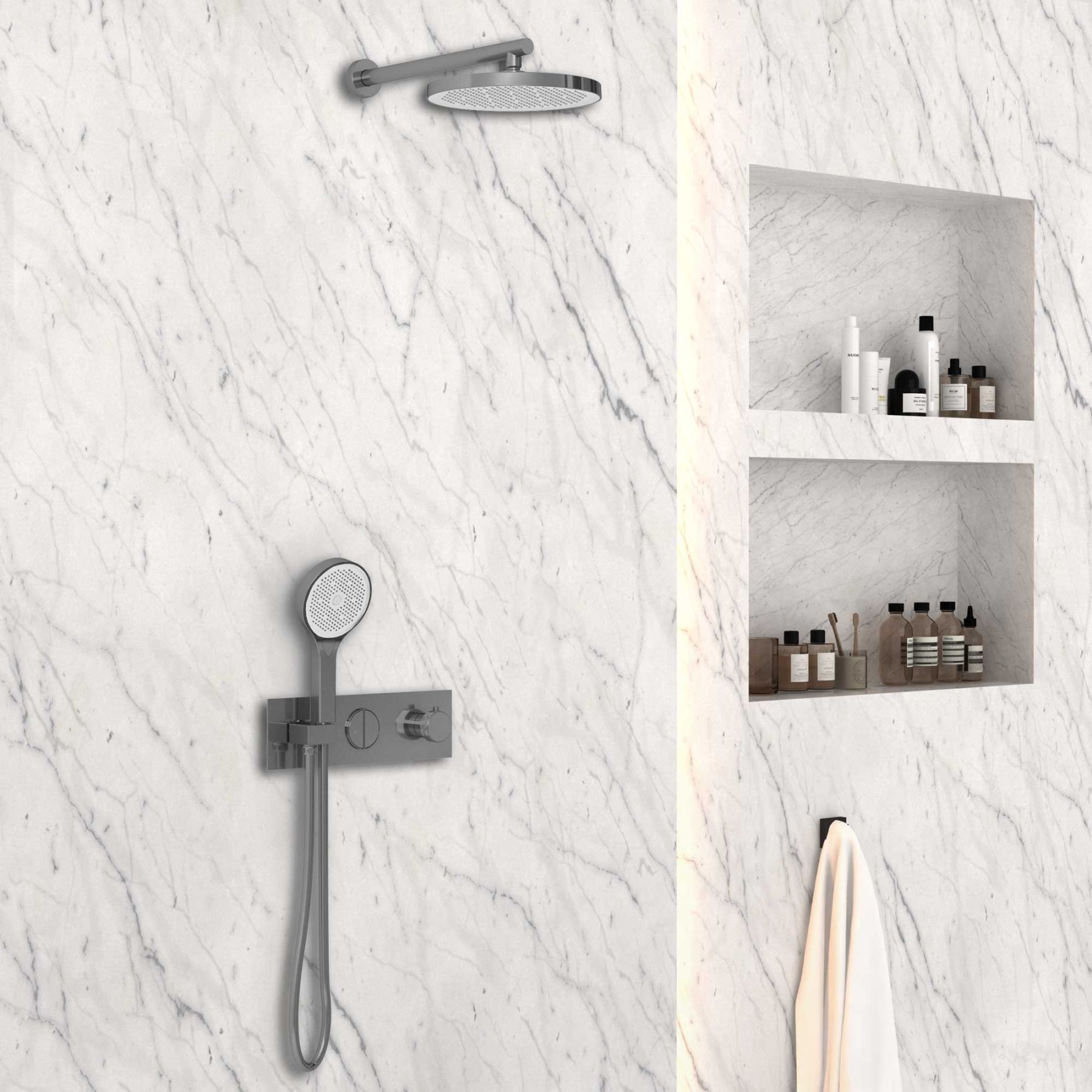 Душевой комплект Vincea VSFW-422T2GM встраиваемый, термостатический, двухрежимный, вороненая сталь купить
