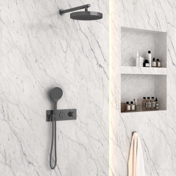 Душевой комплект Vincea VSFW-422TI2GM встраиваемый, двухрежимный, термостатический, вороненая сталь